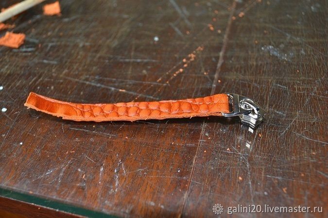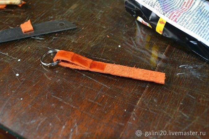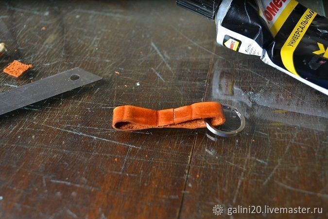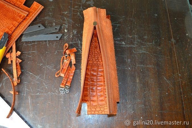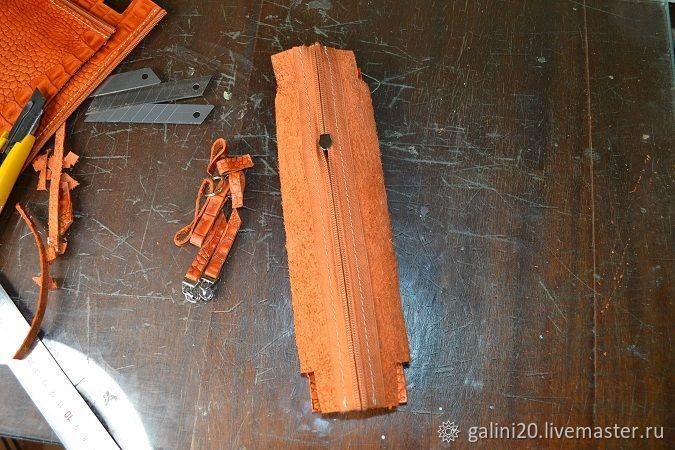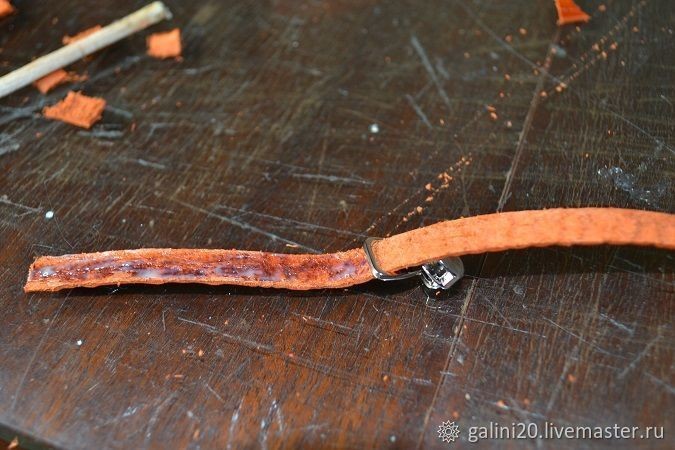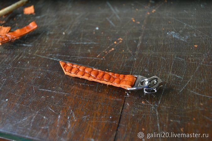 Кожаный хлястик на бегунке обрезаем до нужного размера.