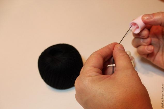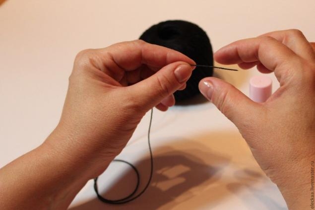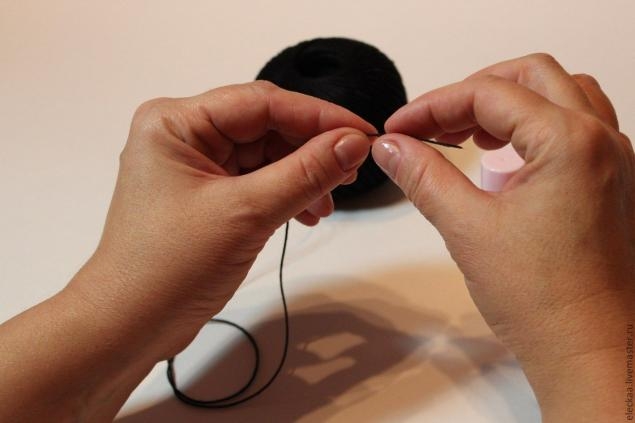 4. Подкручиваем кончик нитки, чтобы он был потоньше, он у нас будет как бы иголочкой. Так поступаем со всеми мотками, оставляем сохнуть как минимум на 2 часа.