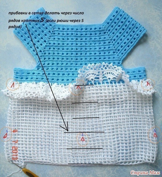 Красивое вязаное платьеПо аналогии можно сделать женскую блузку.