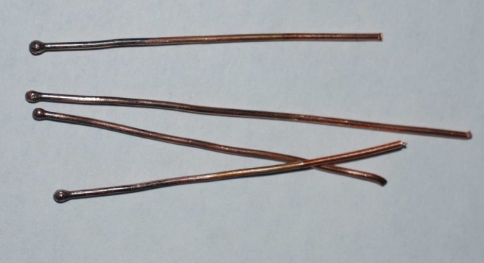 Беру пины и максимально их выпрямляю: отверстие у некоторых бусин 1 мм, а после чернения, нанизывая бусину, важно не сцарапать патину.