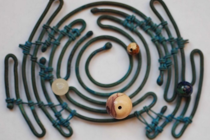 Процесс создания колье "Лабиринт" из медной проволоки: часть 2