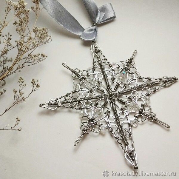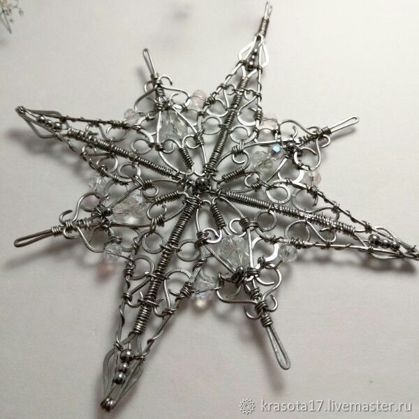 Часть 2 https://www.diyideas.ru/46668-masterim-snezhinku-v-tehnike-wire-wrap-chast-2.html