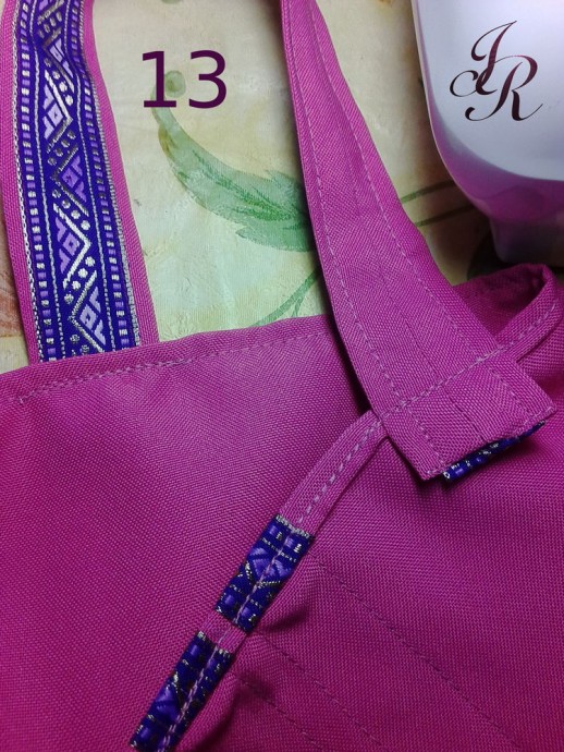 Вот такой промежуточный вариант у нас получился. Осталось украсить верх и низ тесьмой и всё будет готово.