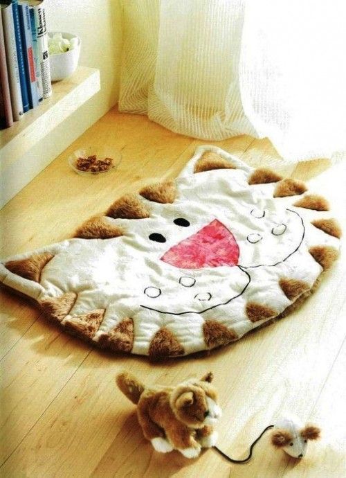 Котик из тканиНе обязательно, чтобы это была ткань традиционных для кошек цветов. Это игрушка и поэтому здесь мы можем проявить фантазию.Нитки и иголка. Вата или синтепух для напо...