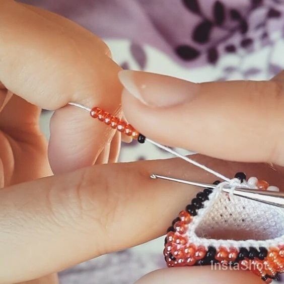 Вязание с бисеромБисер можно не пришивать, а сразу ввязывать.