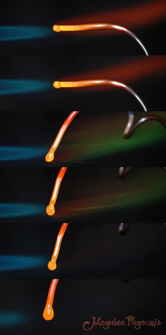 Как только начинает образовываться капля — поворачиваю проволоку вертикально концом вниз.