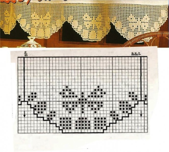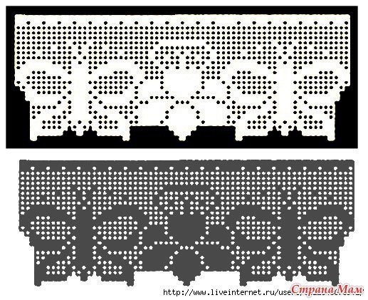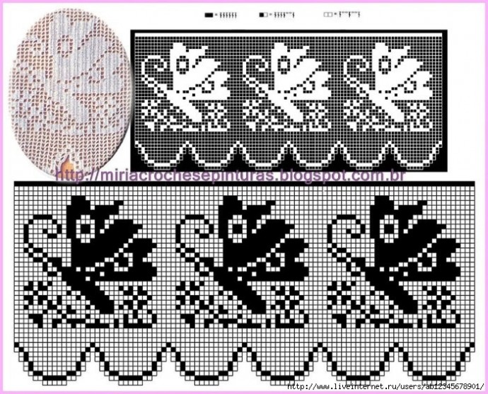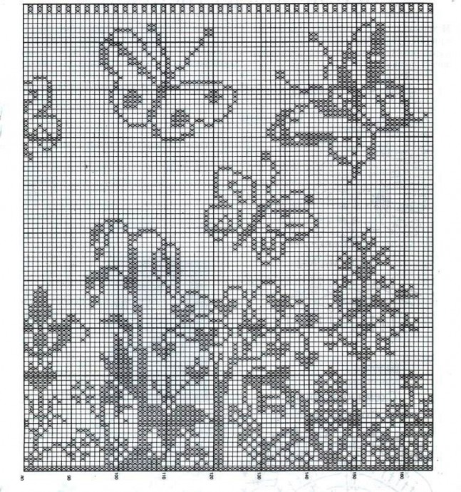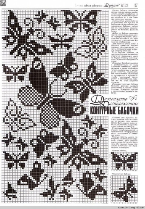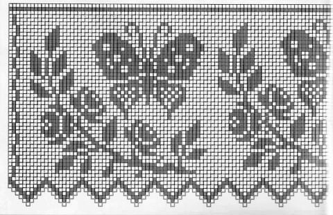 Филейное вязание с бабочкамиМожно использовать как схему для вышивки крестом или для жаккарда.
