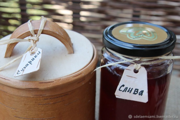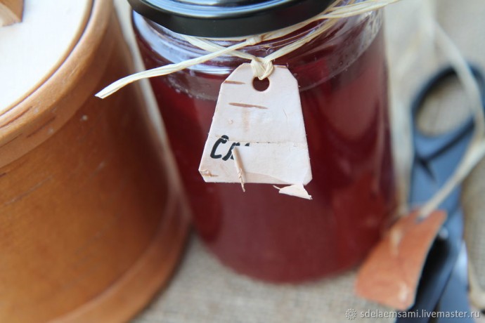 4. Делаем надпись, привязываем бирки, например, к туеску с сухариками и банке с вареньем из сливы. Готово! Долговечные бирки, которые могут даже в земле храниться не одну сотню лет, готовы. Но, как говорится, это еще не всё