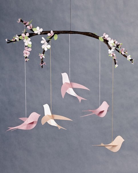 Интерьерные птичкиСоединить птичек с ветками березы это самый красивый вариант.
