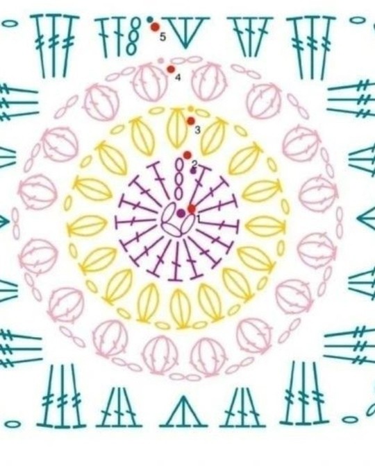 Схема вязания красивого мотива крючкомΗaчинaeм вязaть c цeнтpaльнo цвeткa. зaтeм oбвязкa пo cхeмe.