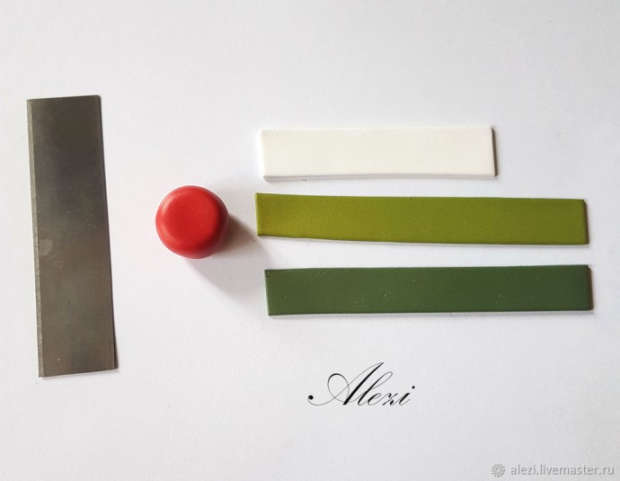 1) полимерная глина (красная, белая, два оттенка зеленого, черная);