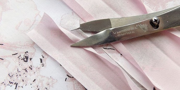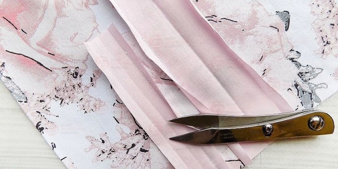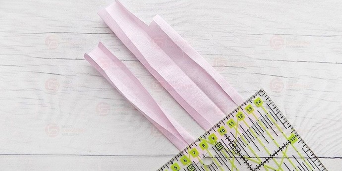 Ход работы Заутюжьте деталь обтачки пополам, потом длинными срезами внутрь (как косую бейку). На планке заутюжьте по линиям припусков и по линии центра.