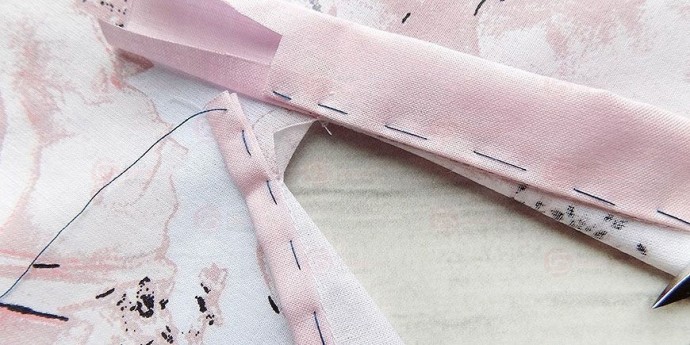 Обогните обтачкой срез и отверните ее на изнаночную сторону. Согните по заутюженной линии и приметайте сгиб к изделию по всей длине.