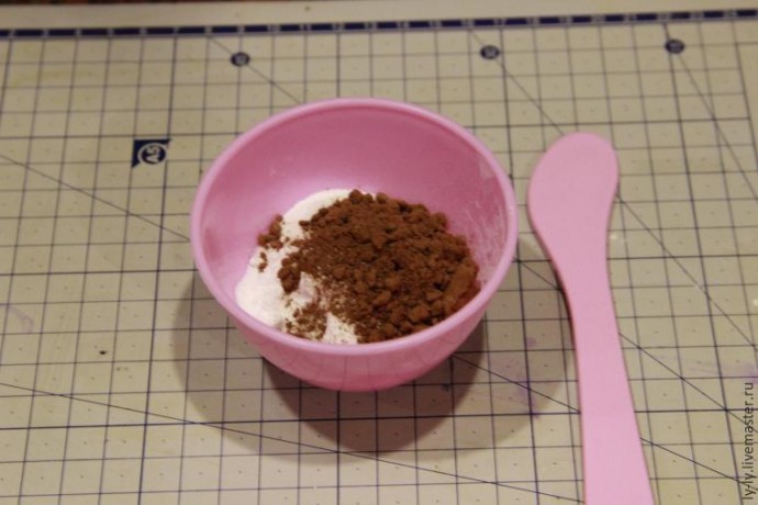 Начнем с того, что в пиалочке смешаем лимонную кислоту и соду, какао порошок и морскую соль.