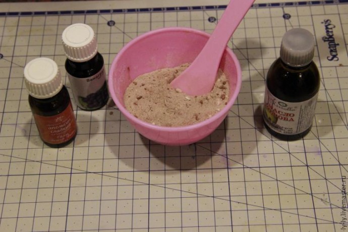 Далее капнем ароматизатор, эфирные масла и краситель.