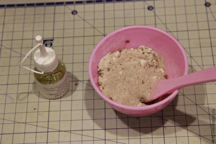 Остается только перемешать все в кофемолке, чтобы сделать нашу массу однородной и пригодной для изготовления бомбочек (когда вы перемолите все еще раз в кофемолке, масса станет немного похожа на мокрый песок, если нет, то капните еще чуть-чуть масла).