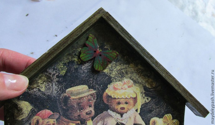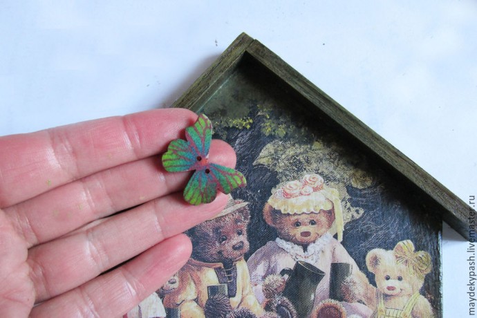 21. Можно украсить ключницу. У меня нашлась вот такая деревянная пуговичка-бабочка.