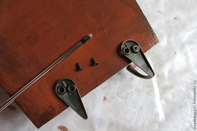 Так как заготовка маленькая (10 х15 см), то крючки я решила прикрутить сзади.