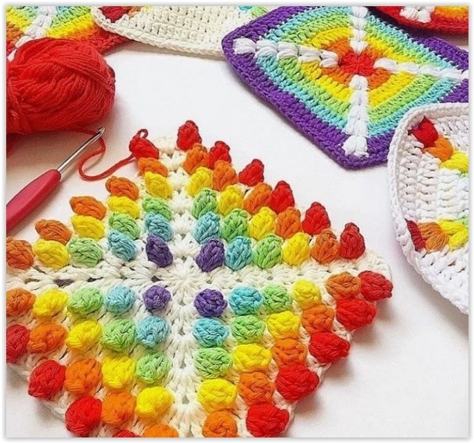 Цветные треугольники крючкомЦветные треугольники крючком могут быть как собраны в какие-то вещи, так и использоваться отдельно.Например, как подставка под горячую чашку, которую ле...