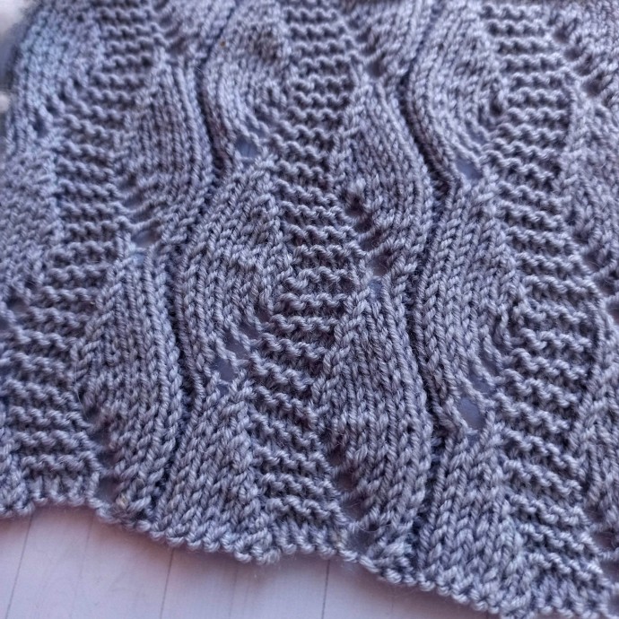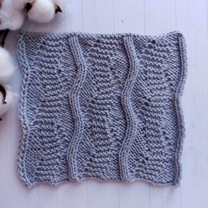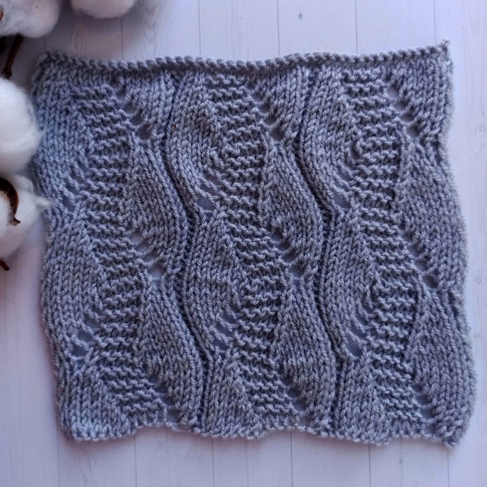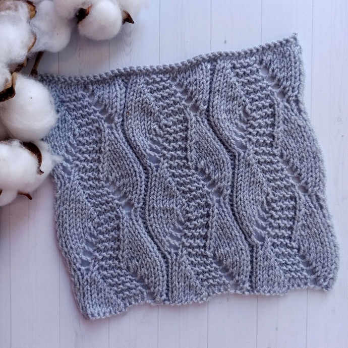Чтобы вязать этот узор по кругу, вязать 14 петель раппорта, в четных рядах петли вязать по рисунку
