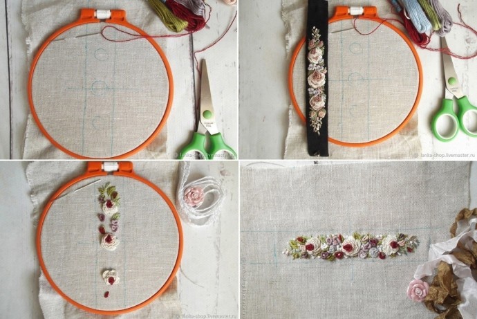 Мастерим заколку с вышивкой "Ирисы"Я хочу предложить сделать заколку своими руками за 1 час. Для этого мне потребуется бархат, х/б ткань, ленты 0.6 мм, нитки ножницы, игла, пластик...
