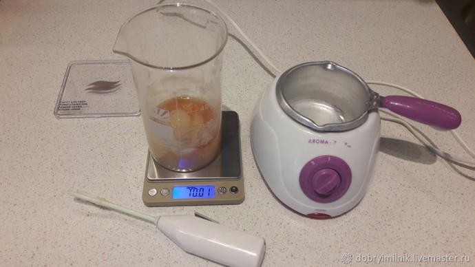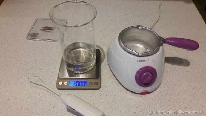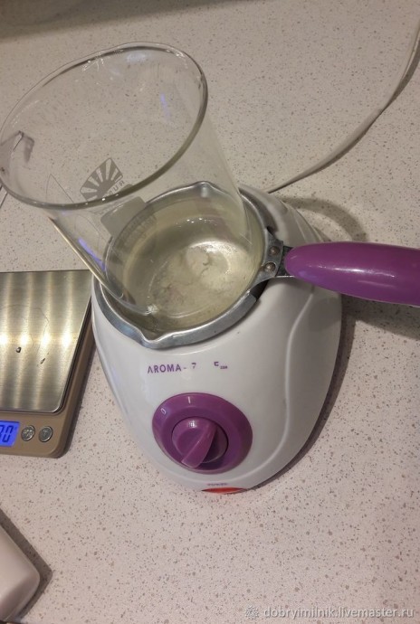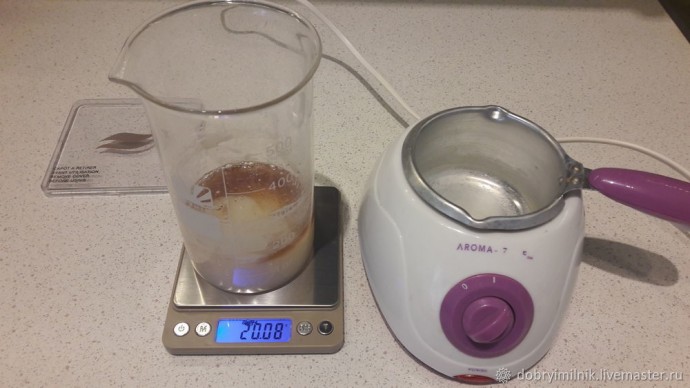 Помещаем мерный стакан на водяную баню.