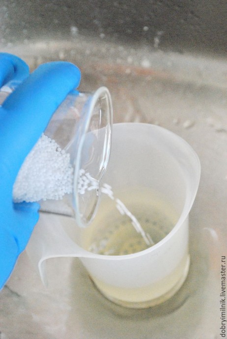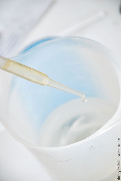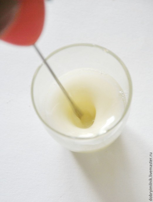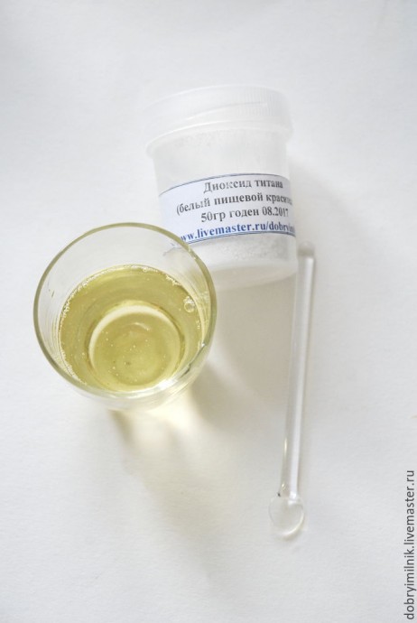 Теперь разводим диоксид. На 500 гр масел достаточно ¼ чайной ложки.