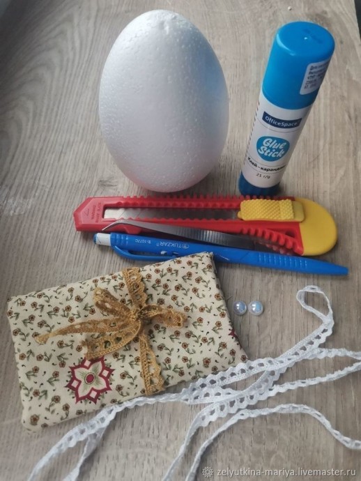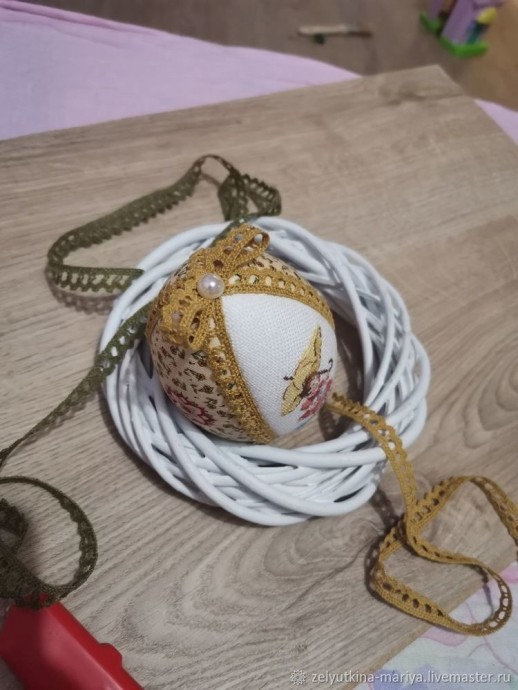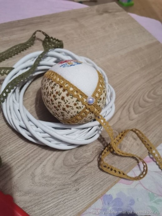 Для работы понадобится: пенопластовое яйцо, полиэтиленовая пленка, иголочки, нитки (хлопчатобумажные или шелковые), клей или жидкое стекло и кисточка Покрываем пенопластовую заго...