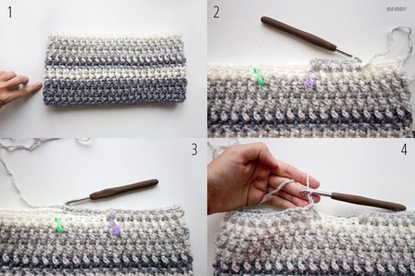 Узор: чередование лицевых и изнаночных рельефных столбиков с накидом.1 ряд: столбики с накидом.2 ряд: 1 лицевой столбик с накидом, 1 изнаночный, 1 лицевой, 1 изнаночный и так до ко...