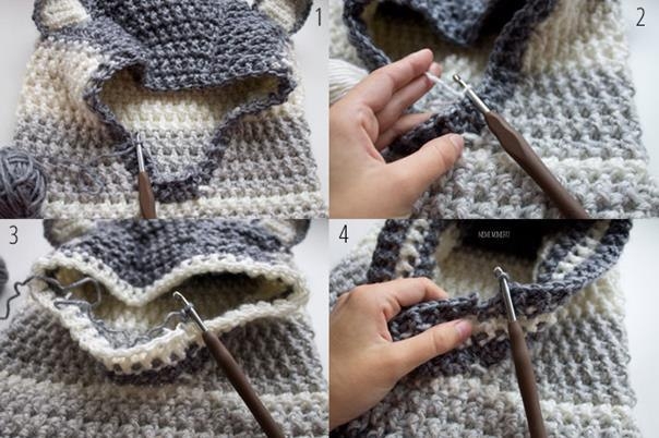 Удобный капюшонВ мастер-классе ниже детально показана его обработка.Творите уютные вещи и будьте счастливы.