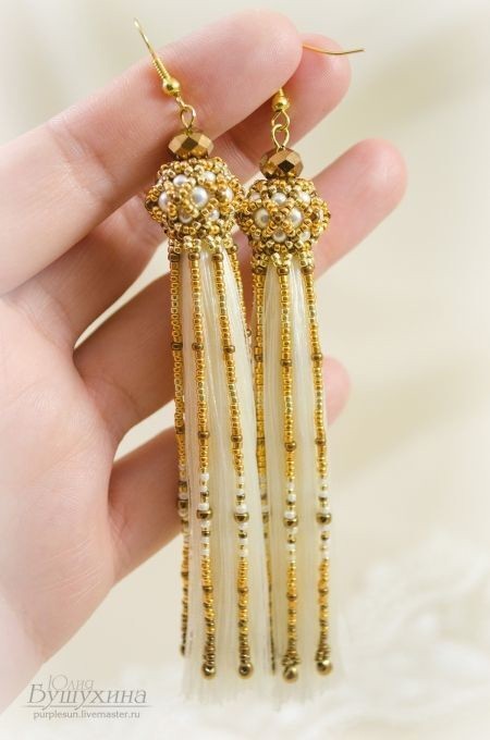 Невероятной красоты оплетка бисером для таких сережек может быть разных цветов.
