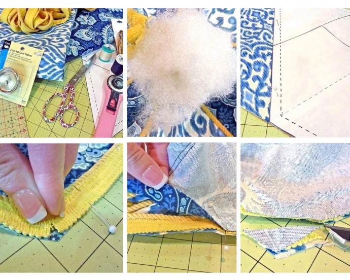 Текстильная подушкаЭта текстильная подушка состоит из сшитых между собой ромбов.