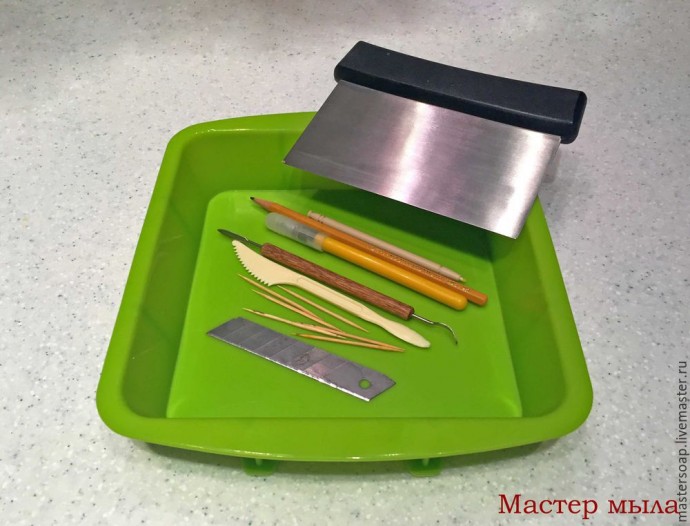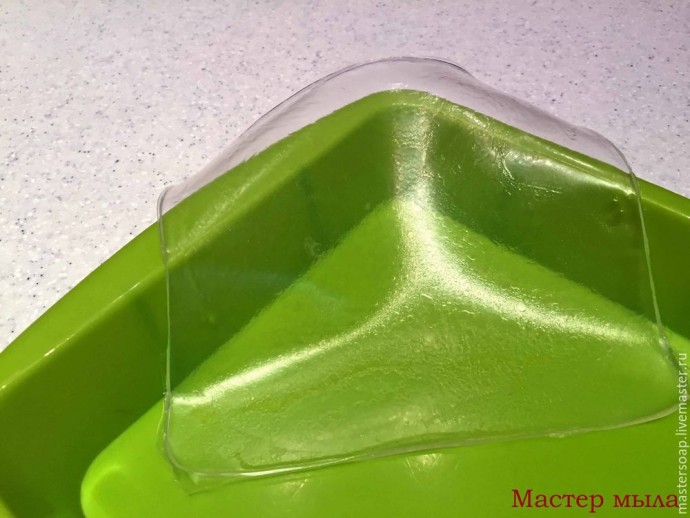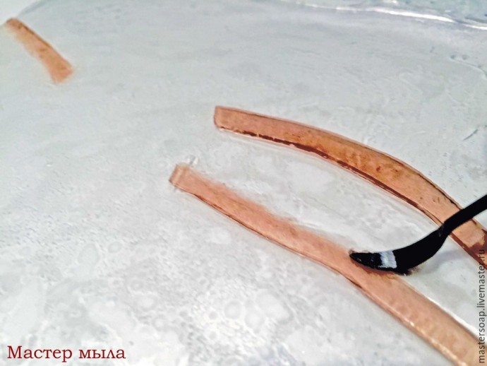 Вынимаем застывшую мыльную основу и вырезаем из нее веточку.