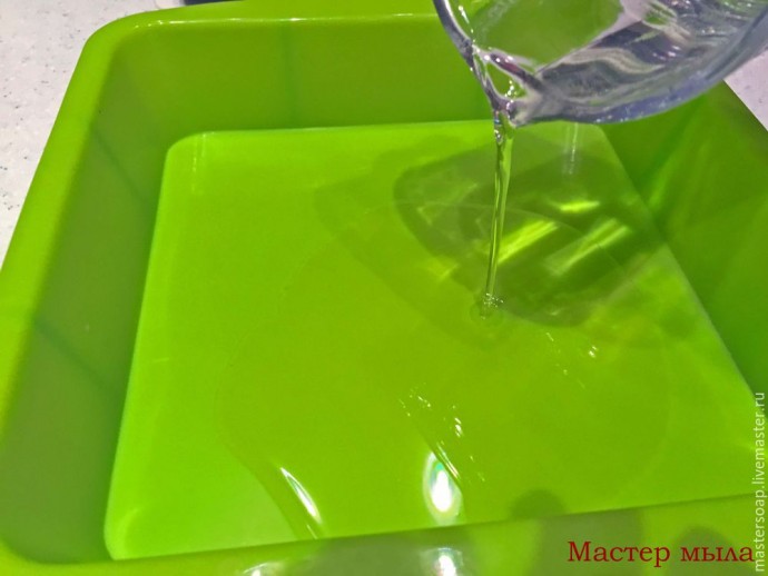 Режем на одинаковые кусочки прозрачную мыльную основу, я использовала производства Англии, но можно взять любую, имеющуюся у вас в наличии. Топим в микроволновой печи, не перегреваем