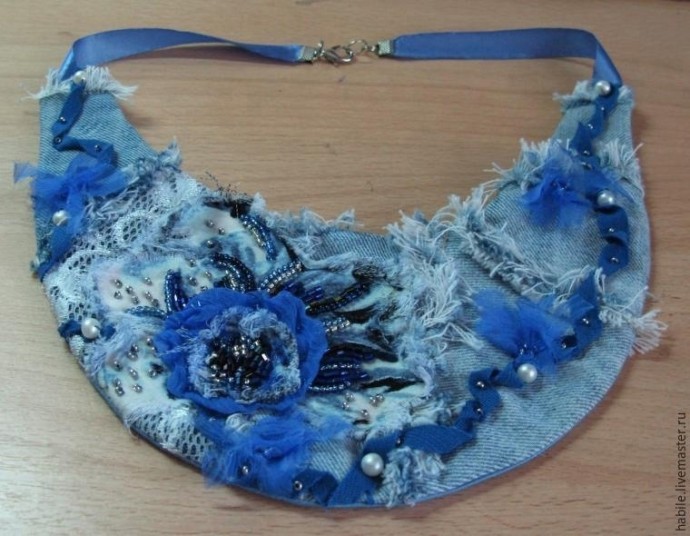 Мастерим оригинальное колье из джинсовой ткани