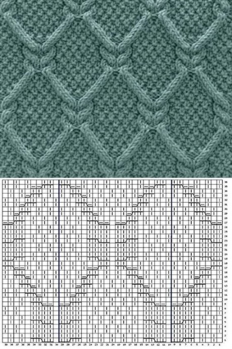 Узор универсальный "Ромбы"Вяжем красивые свитера или кардиганы таким узором.Раппорт узора 10 петель + 2 кромочные петли. 1р.- 1 кром.петля, *вяжем с наклоном вправо*, 1 кром.петля...