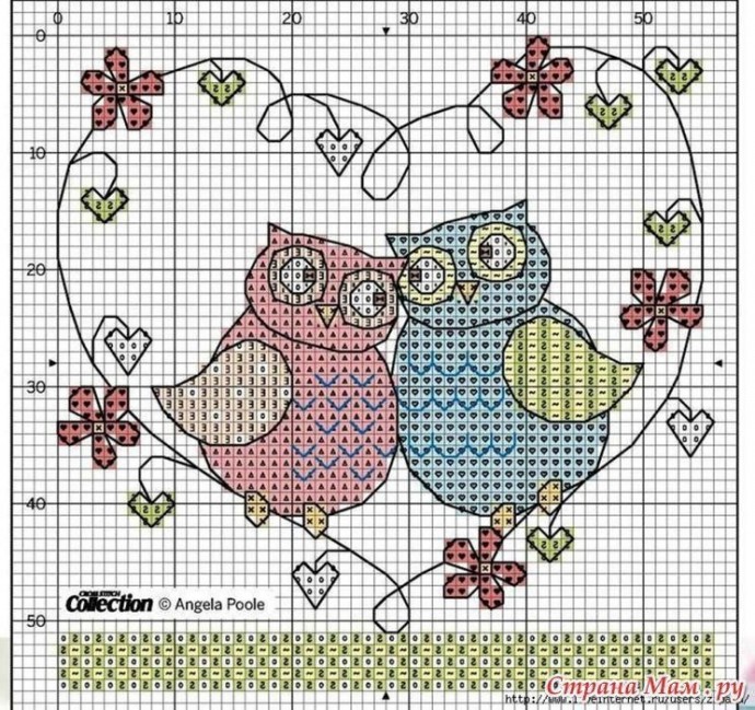 Вышиваем прелестные букеты цветовВоспользуйтесь прилагаемой легендой или подберите оттенки мулине для букетов самостоятельно - так получится неповторимо.