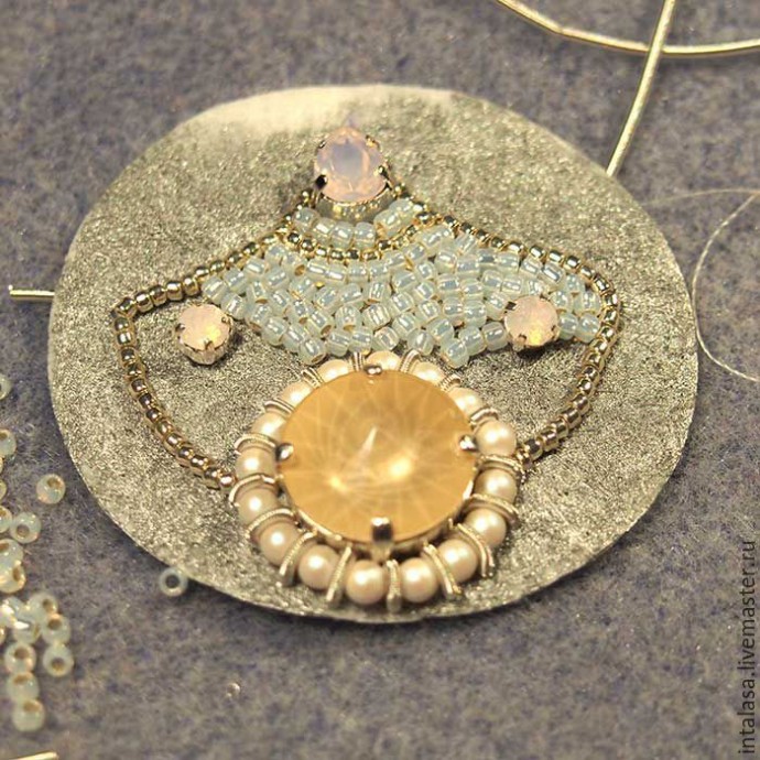 Ну и хаотично заполняю все свободное пространство 11-м бисером. Каждую бисеринку пришиваю индивидуально в произвольном порядке.