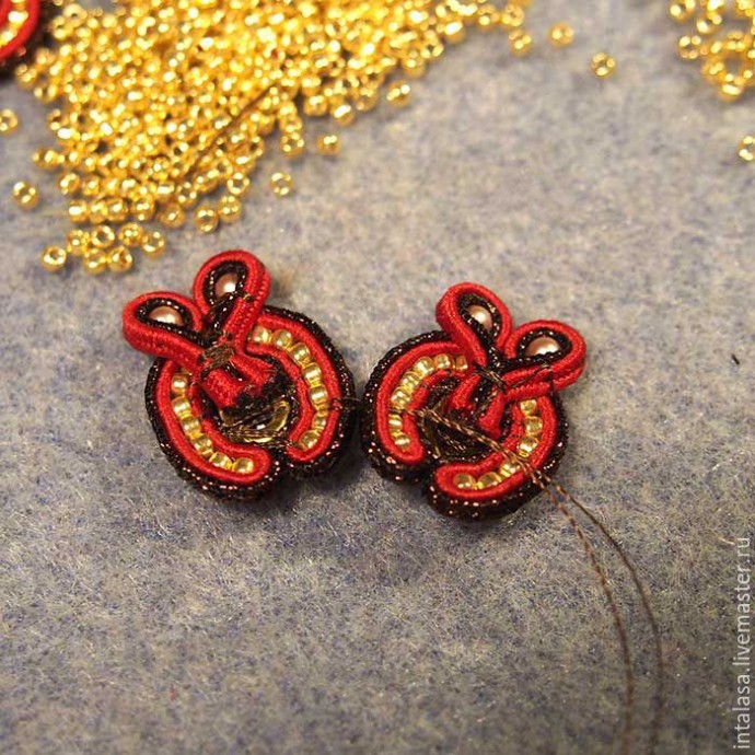 Тут я тоже сначала пришиваю бисер, а потом следующий слой сутажа.