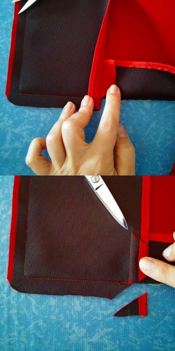 Красивая обработка прямого угла срезов ткани позволяет создавать очень аккуратные вещи.