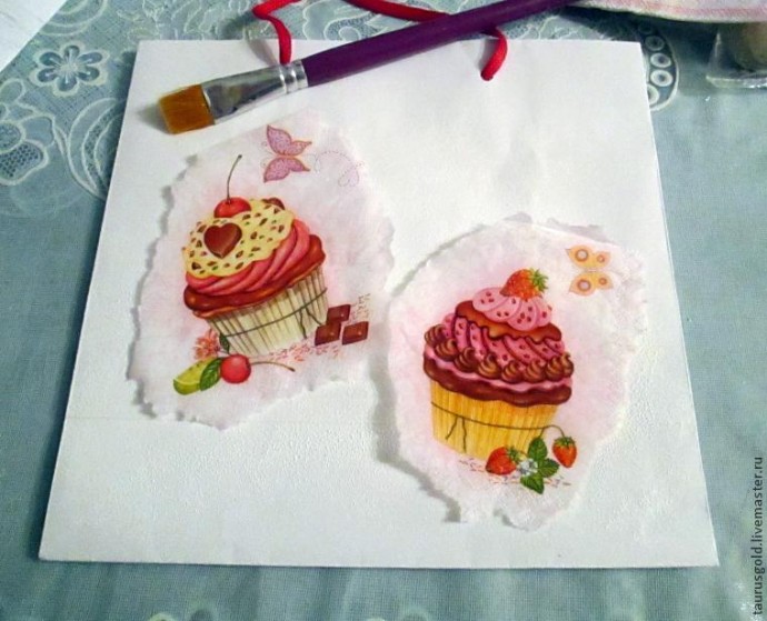 Сегодня у меня совсем мало времени, поэтому я решила использовать технику декупаж. Для этого выбираем понравившиеся мотивы, прикидываем, как будут они смотреться.
