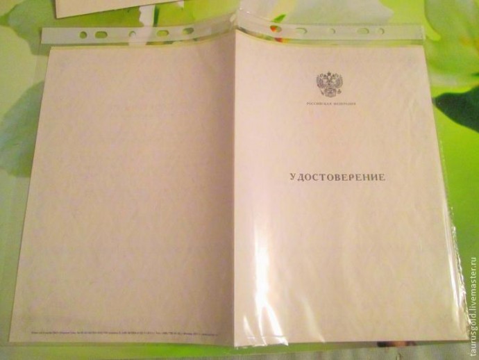 Столкнулась на днях с проблемой: получила удостоверение, а оно без обложки. Пошла по книжным магазинам в поисках "корочки", но, увы... Нестандарт. Хотя формат обычный — А4. Ну и задумалась я над тем, как ее можно самой сделать. Изучив все, что есть на эту тему в интернете, и не найдя то, что нужно именно мне, решила сделать по-своему. Может, кому-нибудь пригодится мой мастер-класс. Итак, мы имеем.