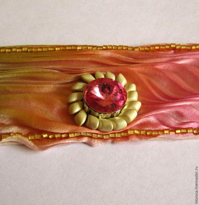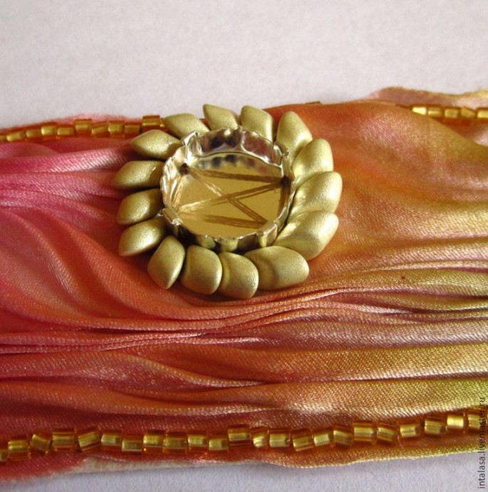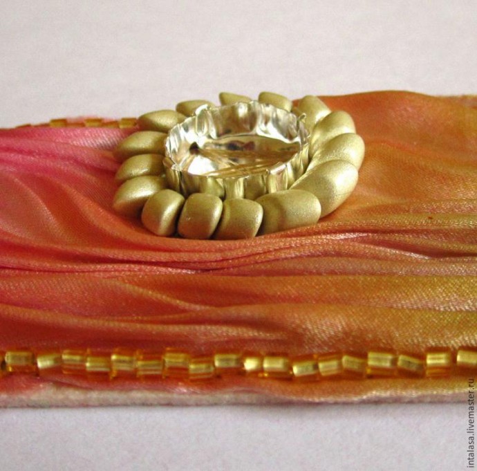 (в моем случае основой выступает кусочек фетра, на который нашита лента шибори)