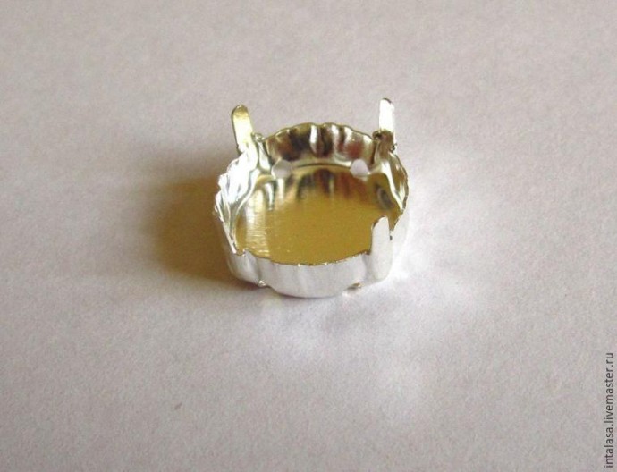 Вообще-то, в теории, существуют хорошие касты для риволи, красивые, ровные и даже с родиевым или золотым покрытием, но у меня их не оказалось, зато наличествуют китайские.