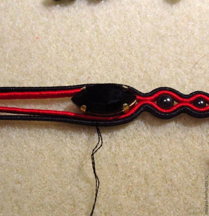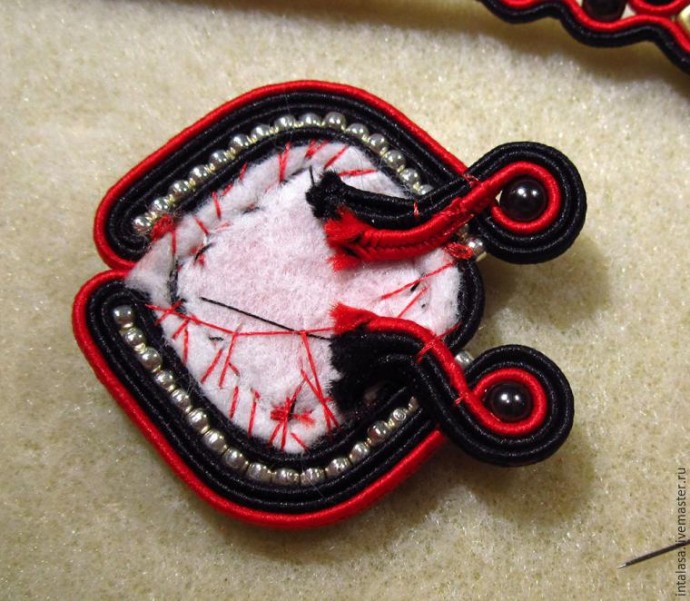 Точки, где соединяется сутаж, прошиваются несколько раз и каждый стежок хорошо затягивается. Я прошивала 3-4 раза.