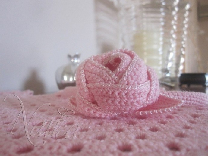 Плед мотивами крючком с объемными цветами станет украшением всего интерьера.