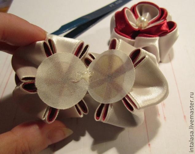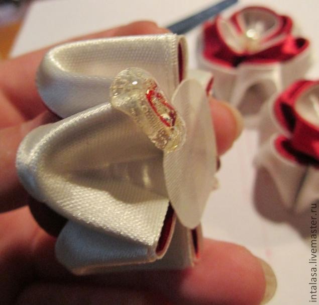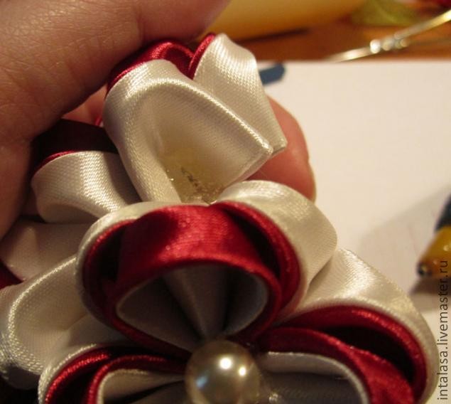 Ждем, пока клей "встанет" и "нашмякиваем" клею в арку одного из двух скрепленных цветов