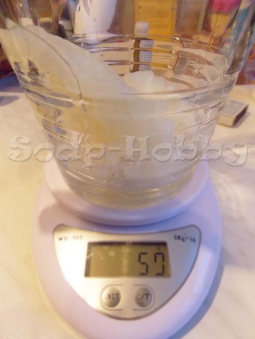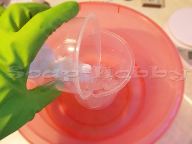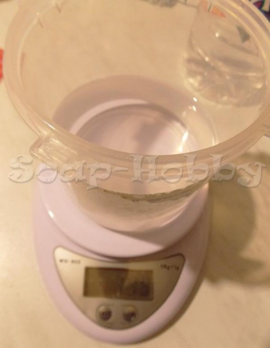- гидроксид натрия и дистиллированную воду рассчитываем по калькулятору щелочи. Необходимо взять меньший процент воды. Я взяла 33%, однако, лучше брать еще меньше. Где-нибудь 28%;