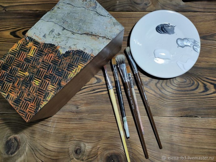 Покрываем лаком весь короб. Если уверенно работает сухой кистью этот шаг можно пропустить.