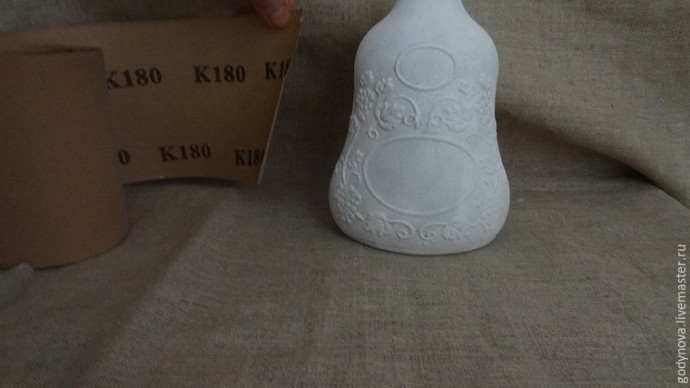 Там, где рисунок выдавлен на бутылке, лучше и не пробовать, сразу шкурится до стекла. В овалах обязательно надо пошкурить.